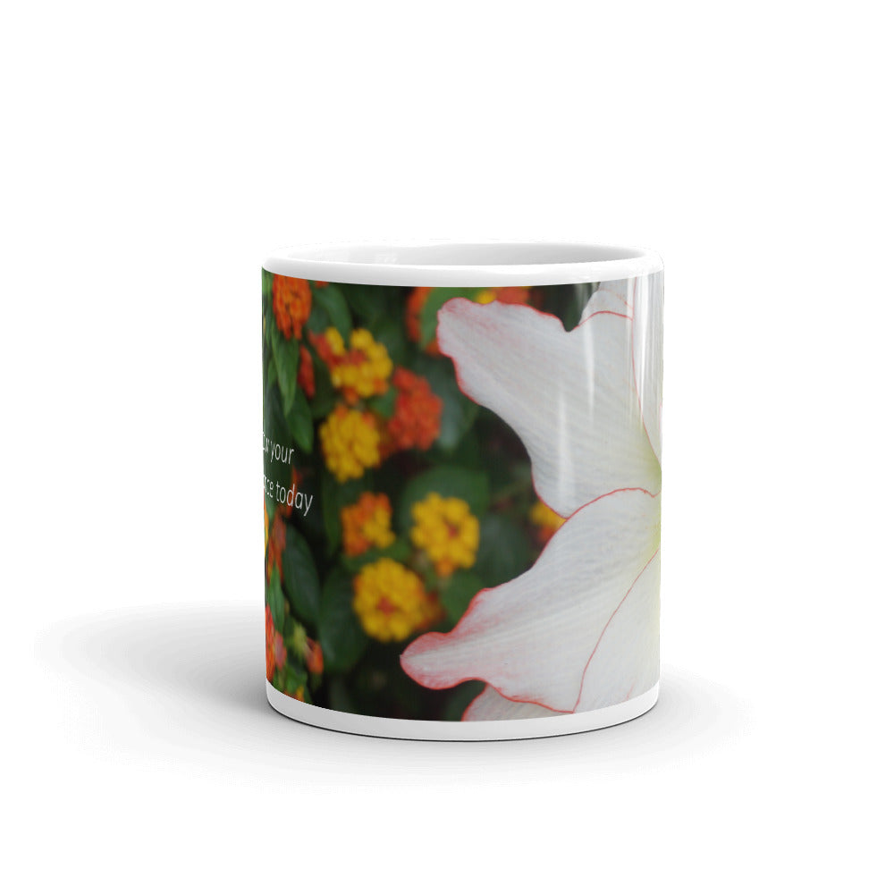 Enjoy this one-of-a-kind mug featuring Michael’s photography of this Amaryllis and Orange Lantana bloom from his very own garden with ever sip!
